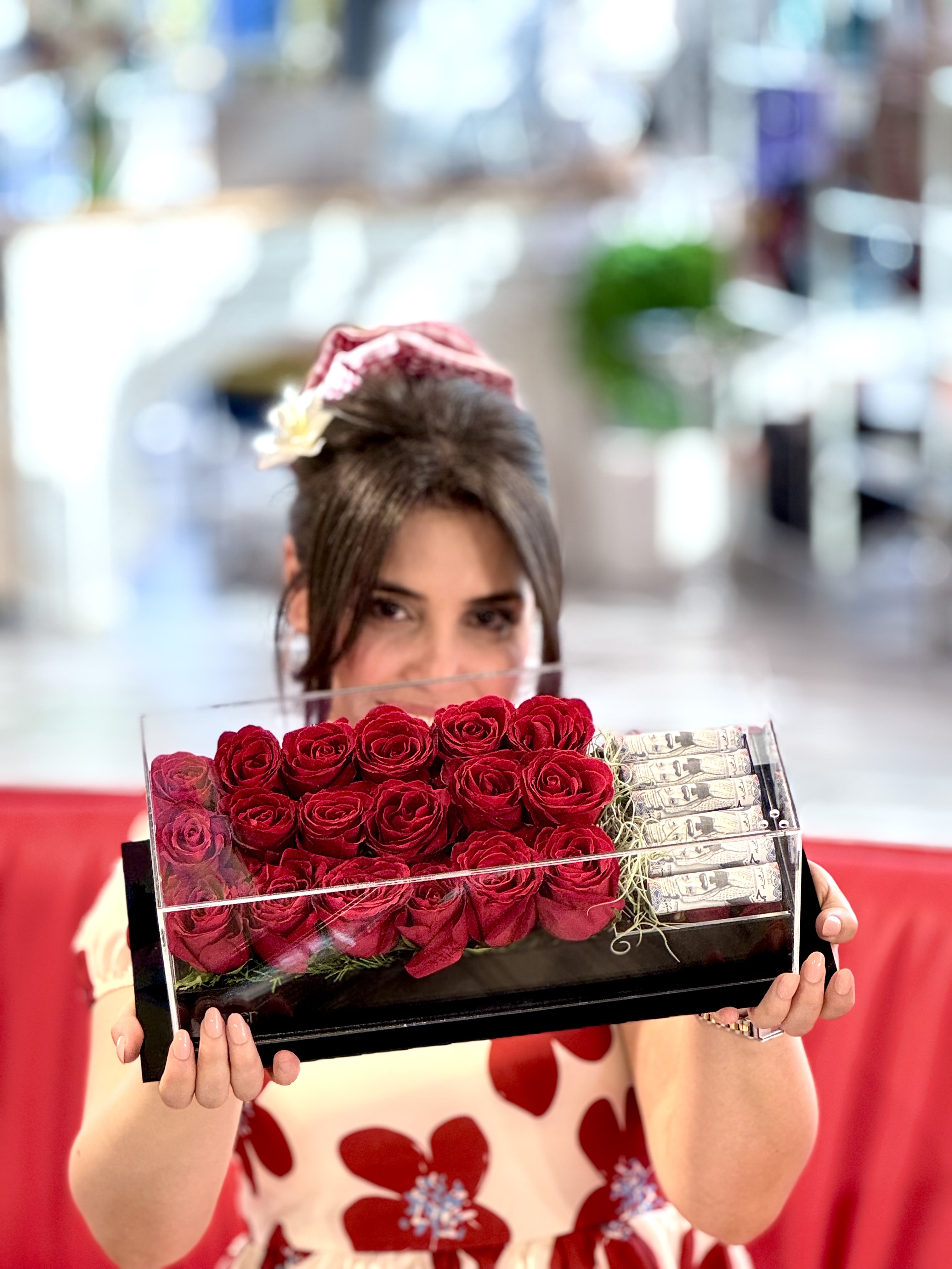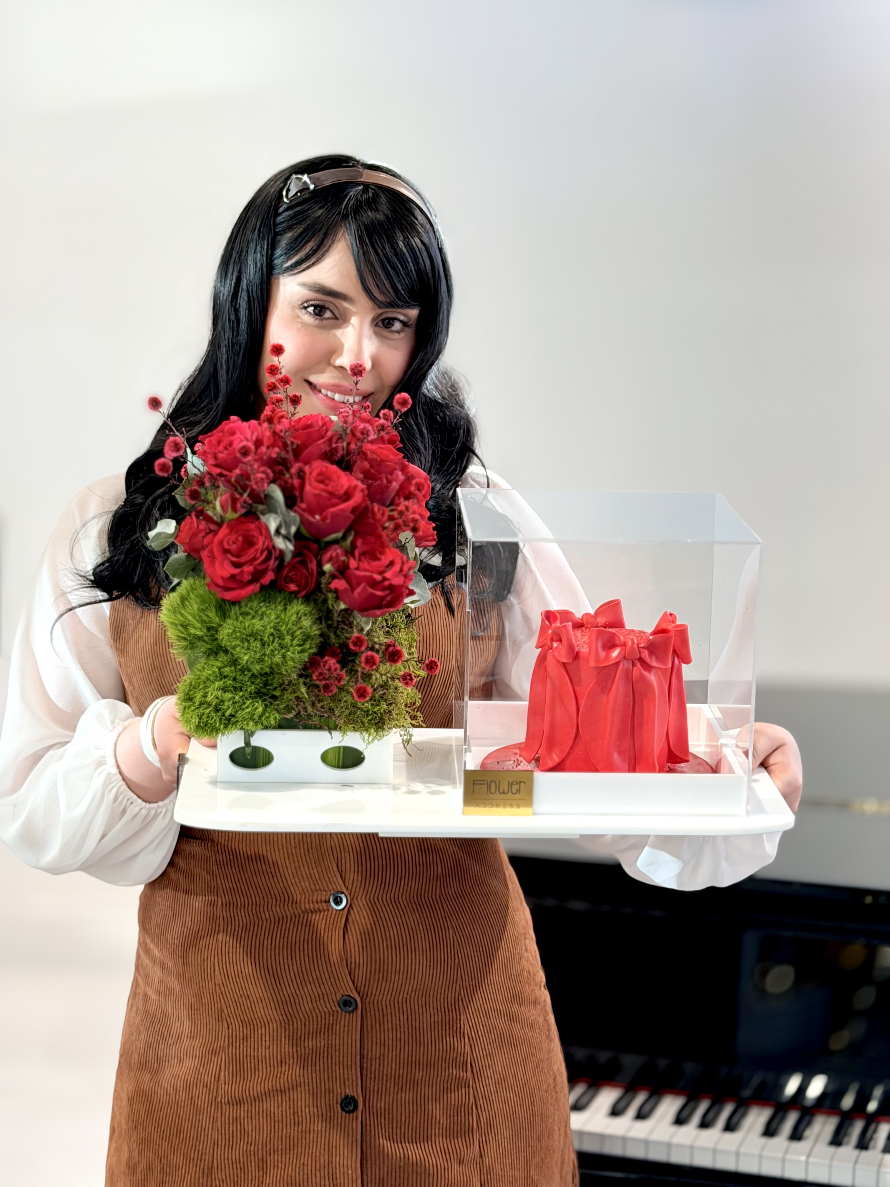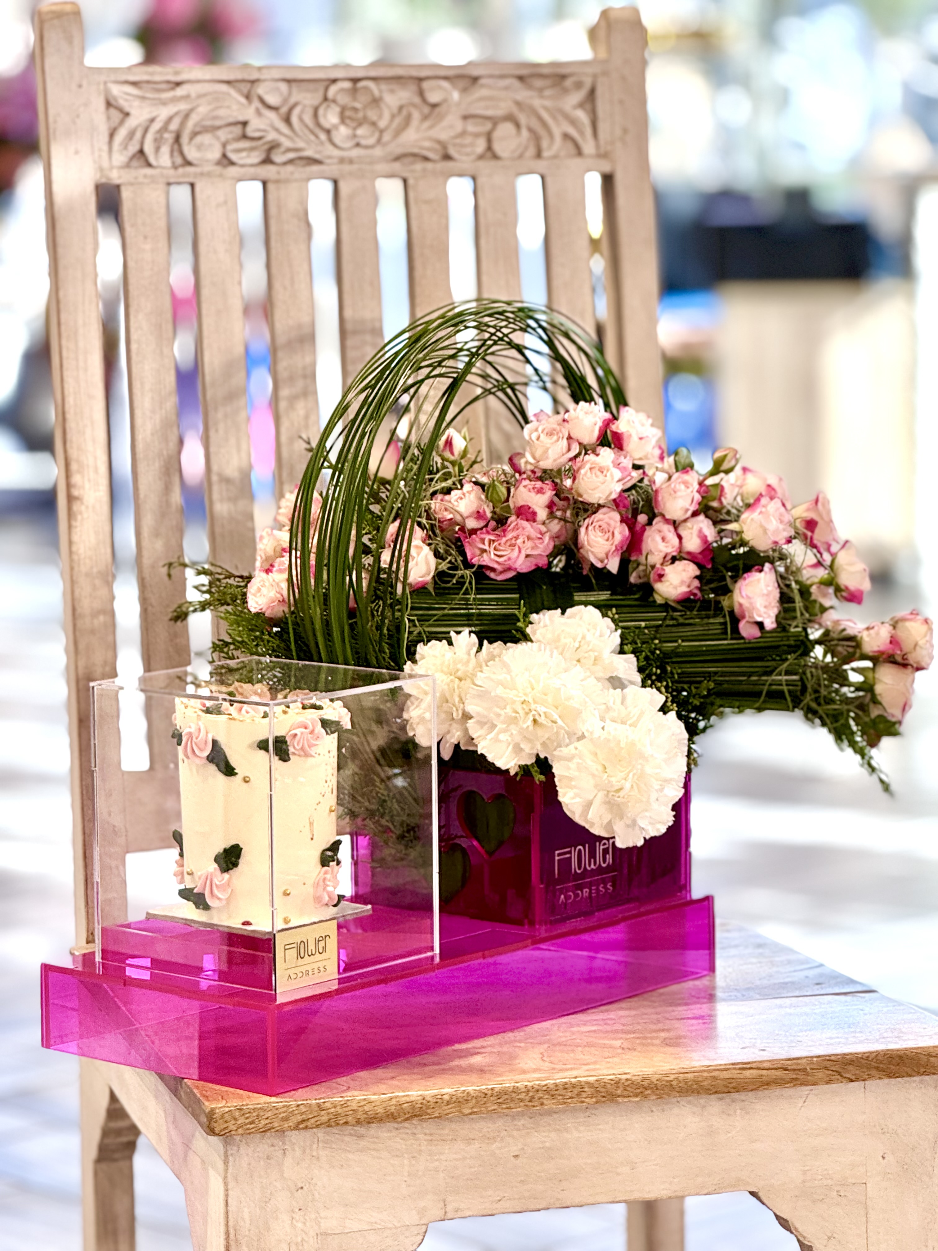زهرة الكارنيشن الاكوادوري مع كيكة الريد فلفيت