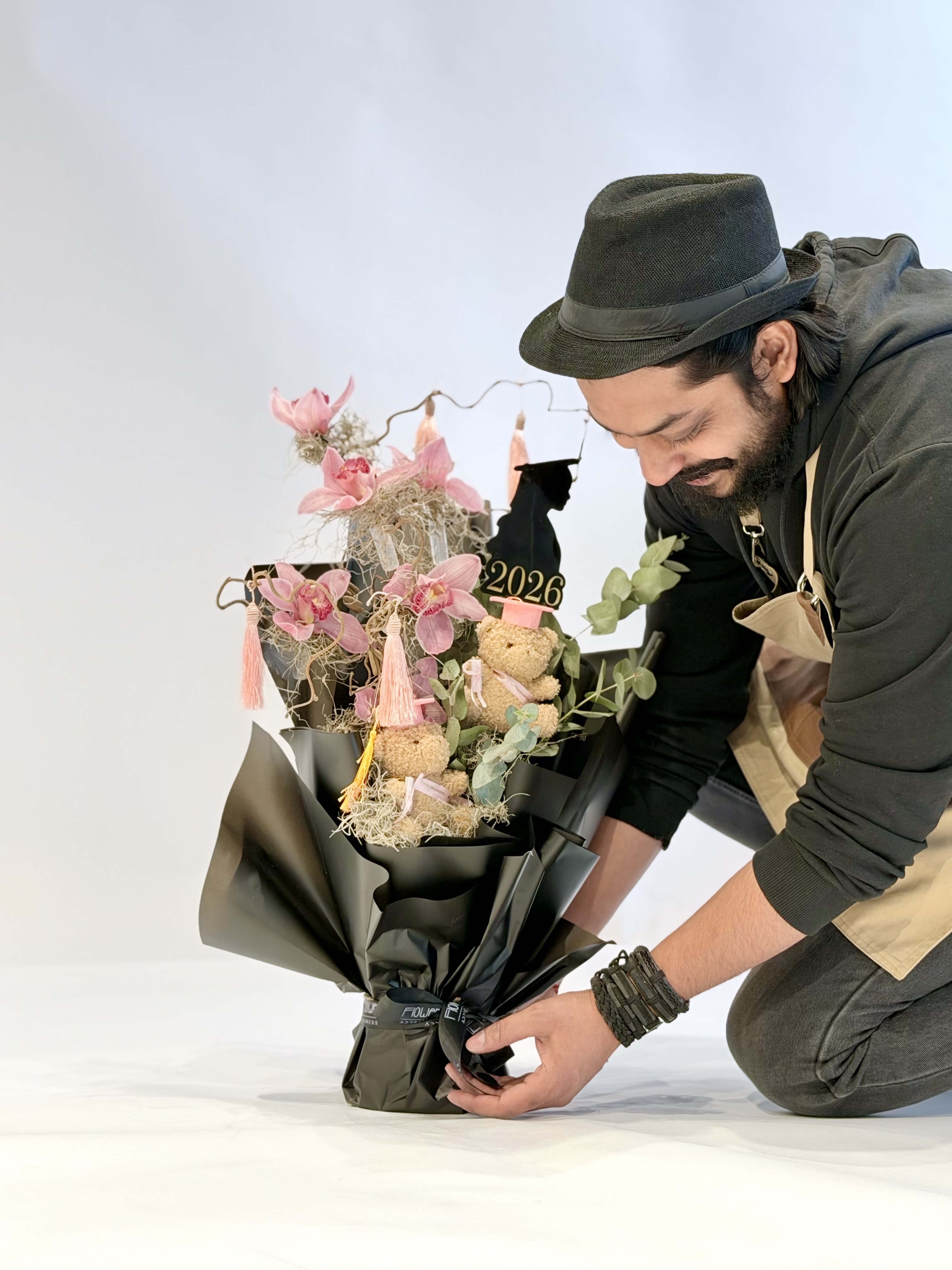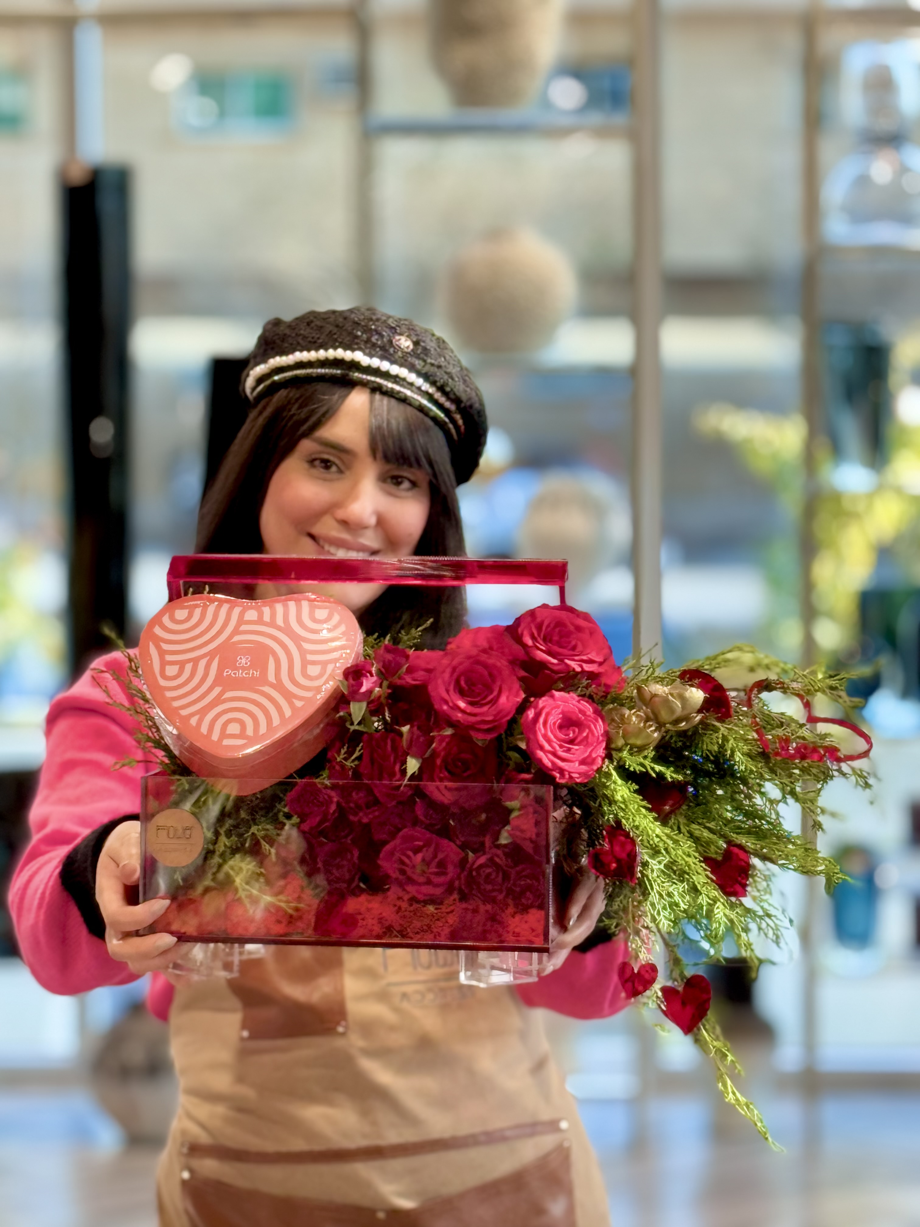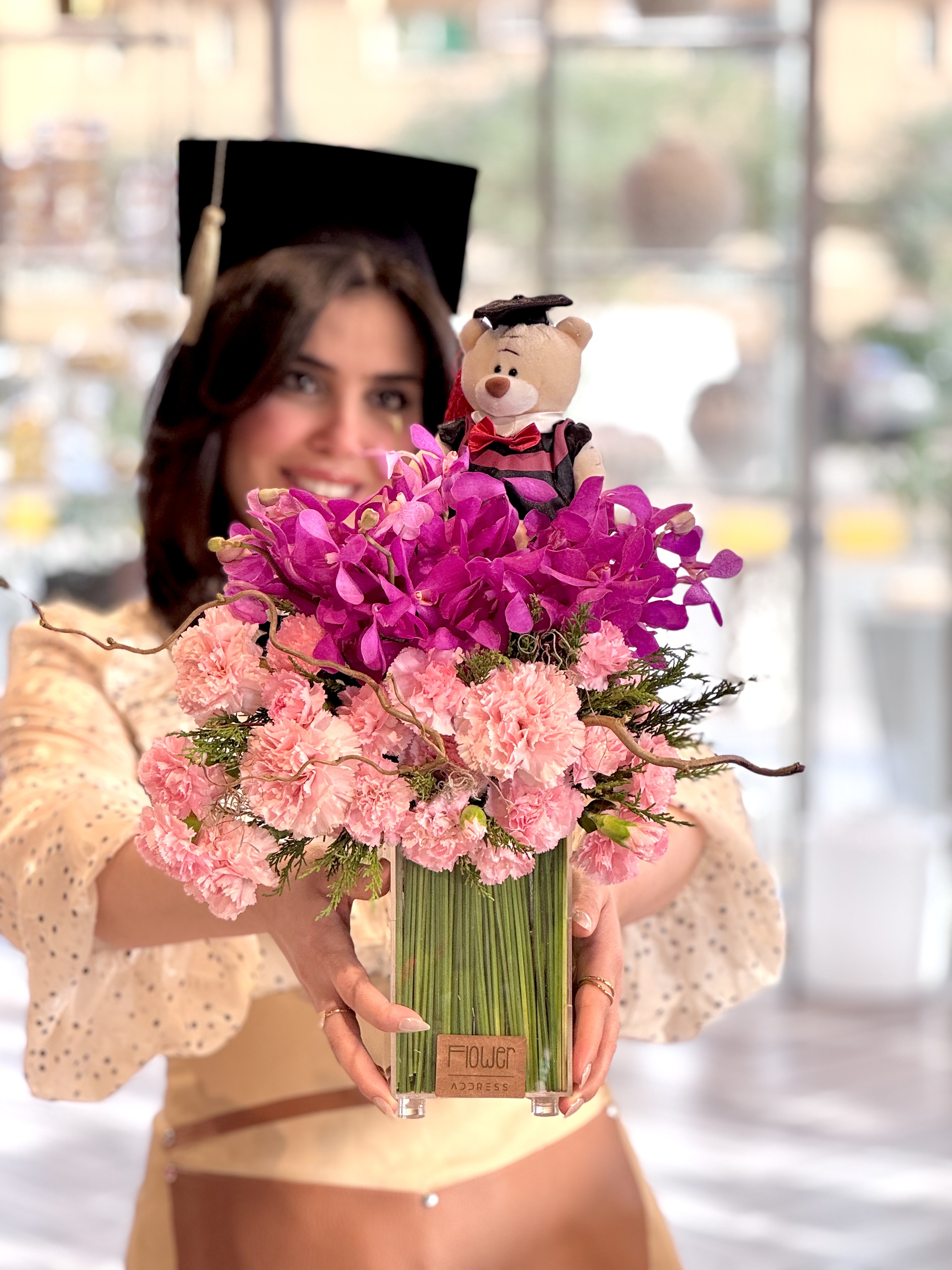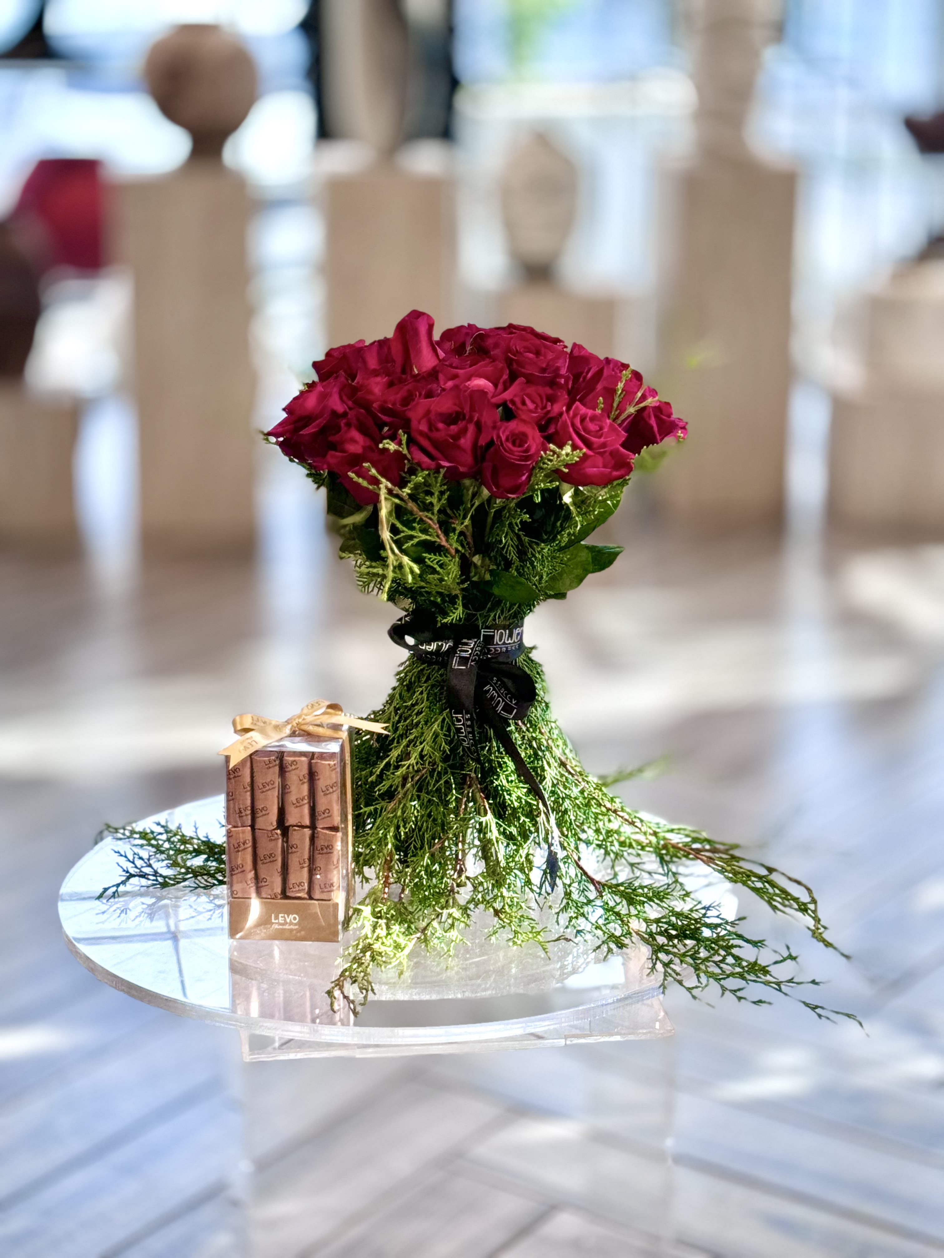 زهرة الكارنيشن الاكوادوري مع كيكة الريد فلفيت