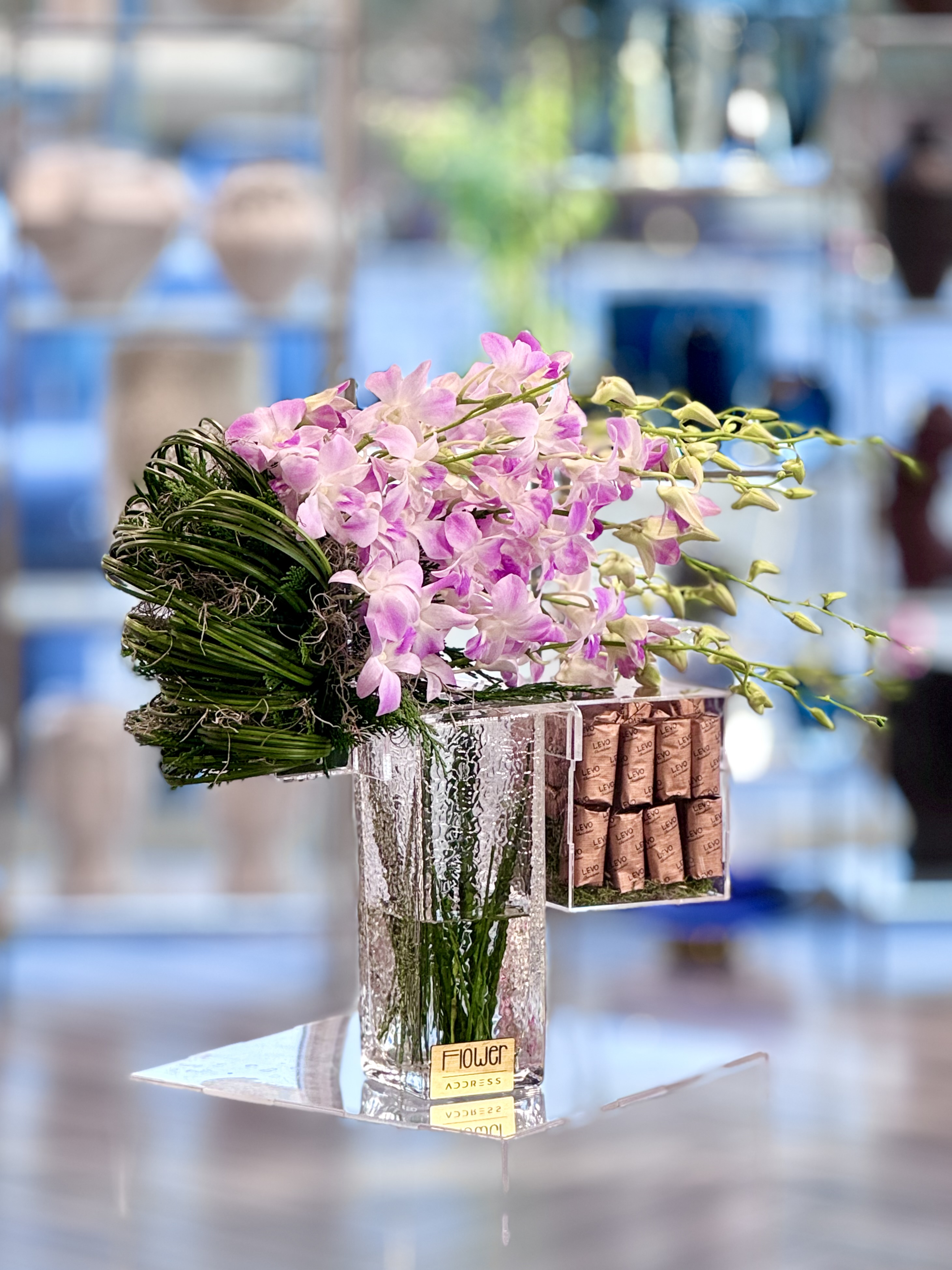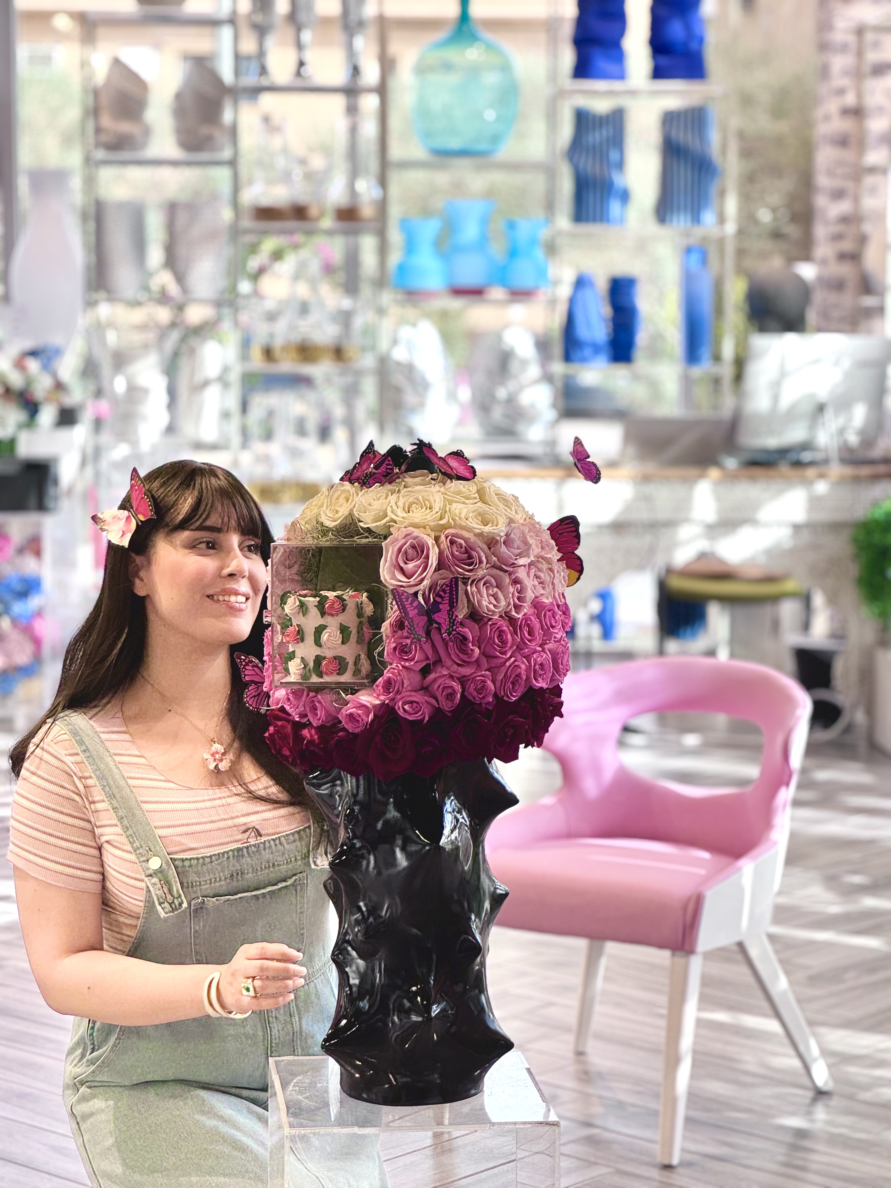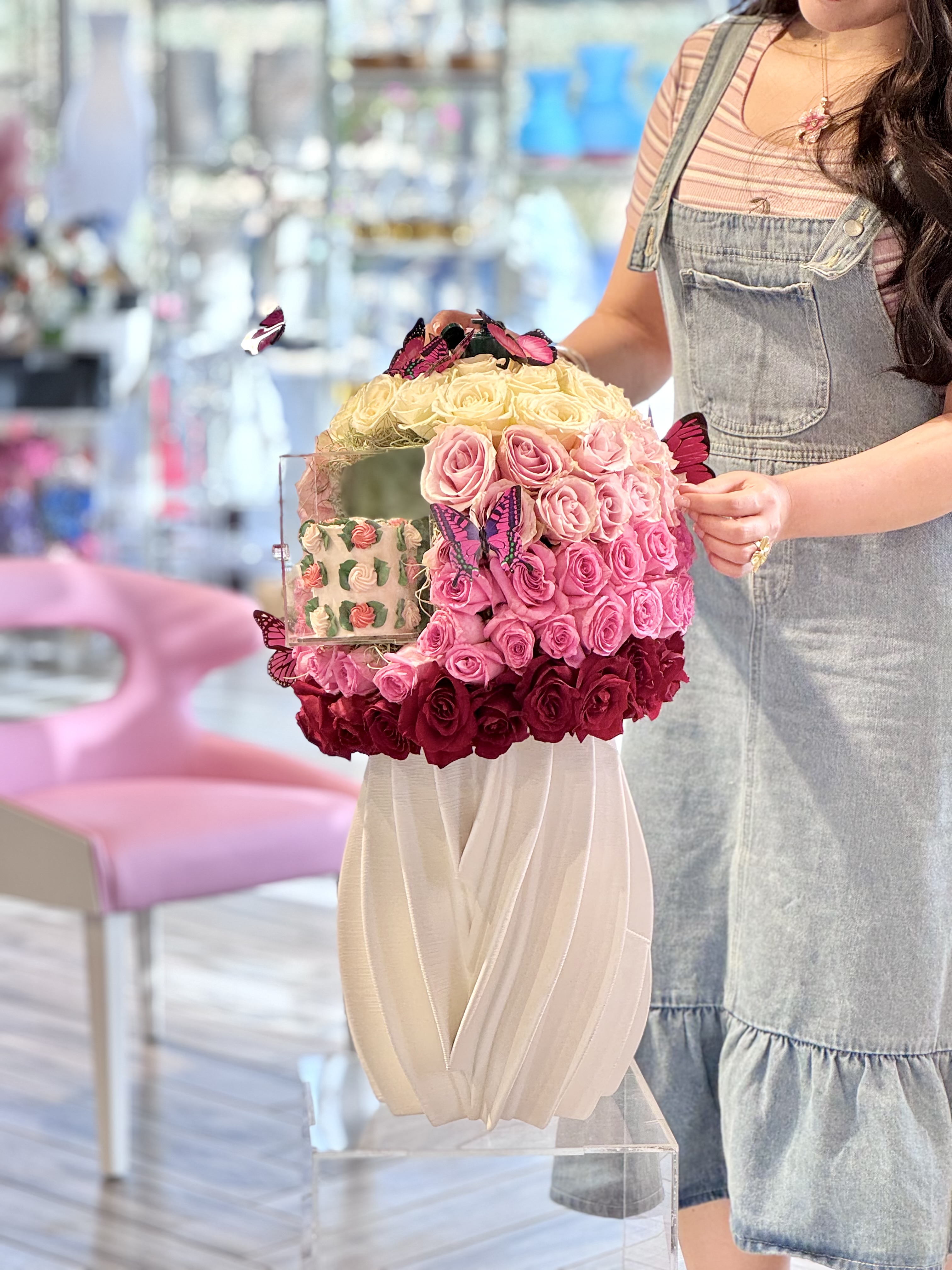 فازة السيراميك مع الفراشه المتحركة والكيك