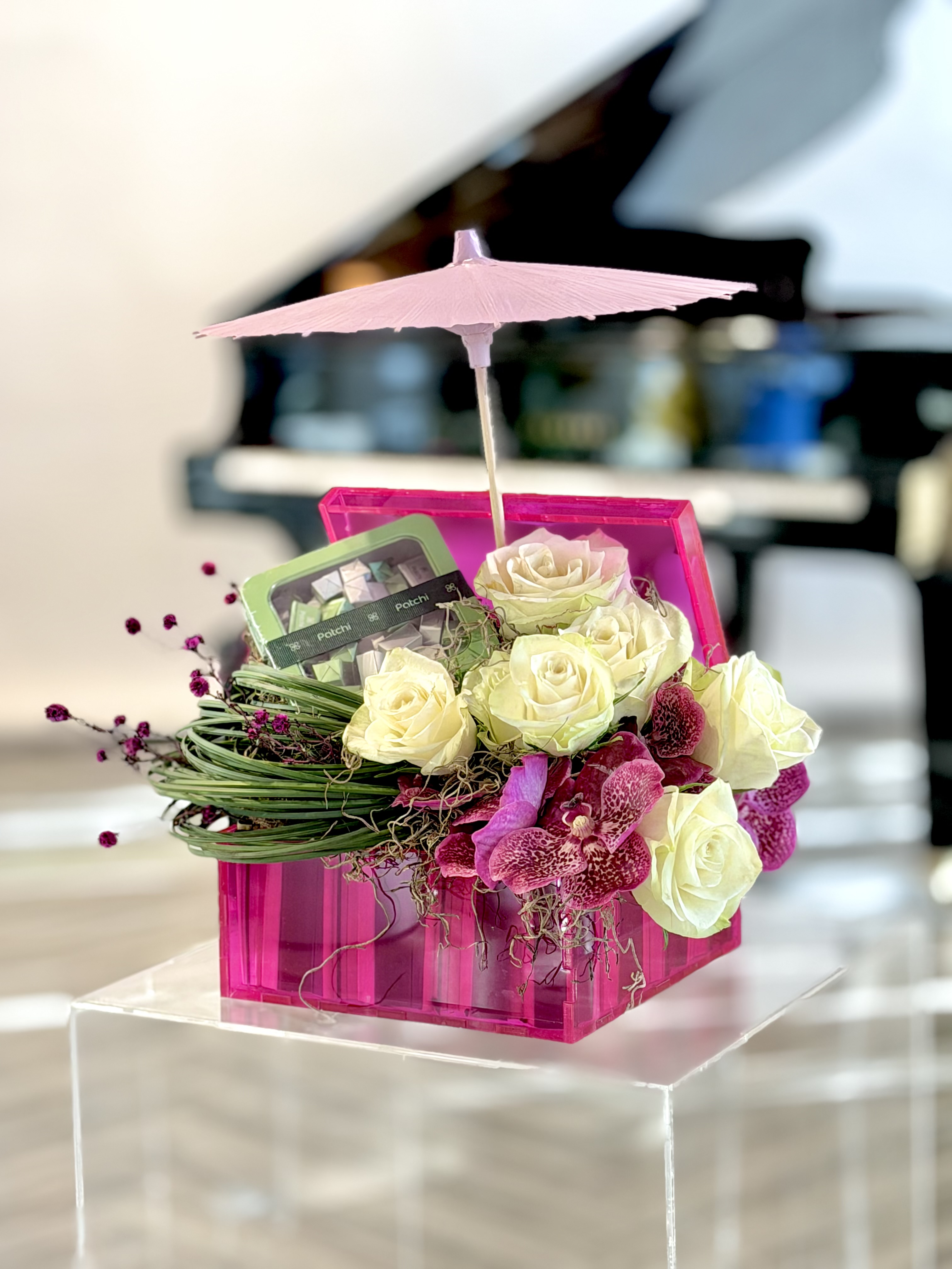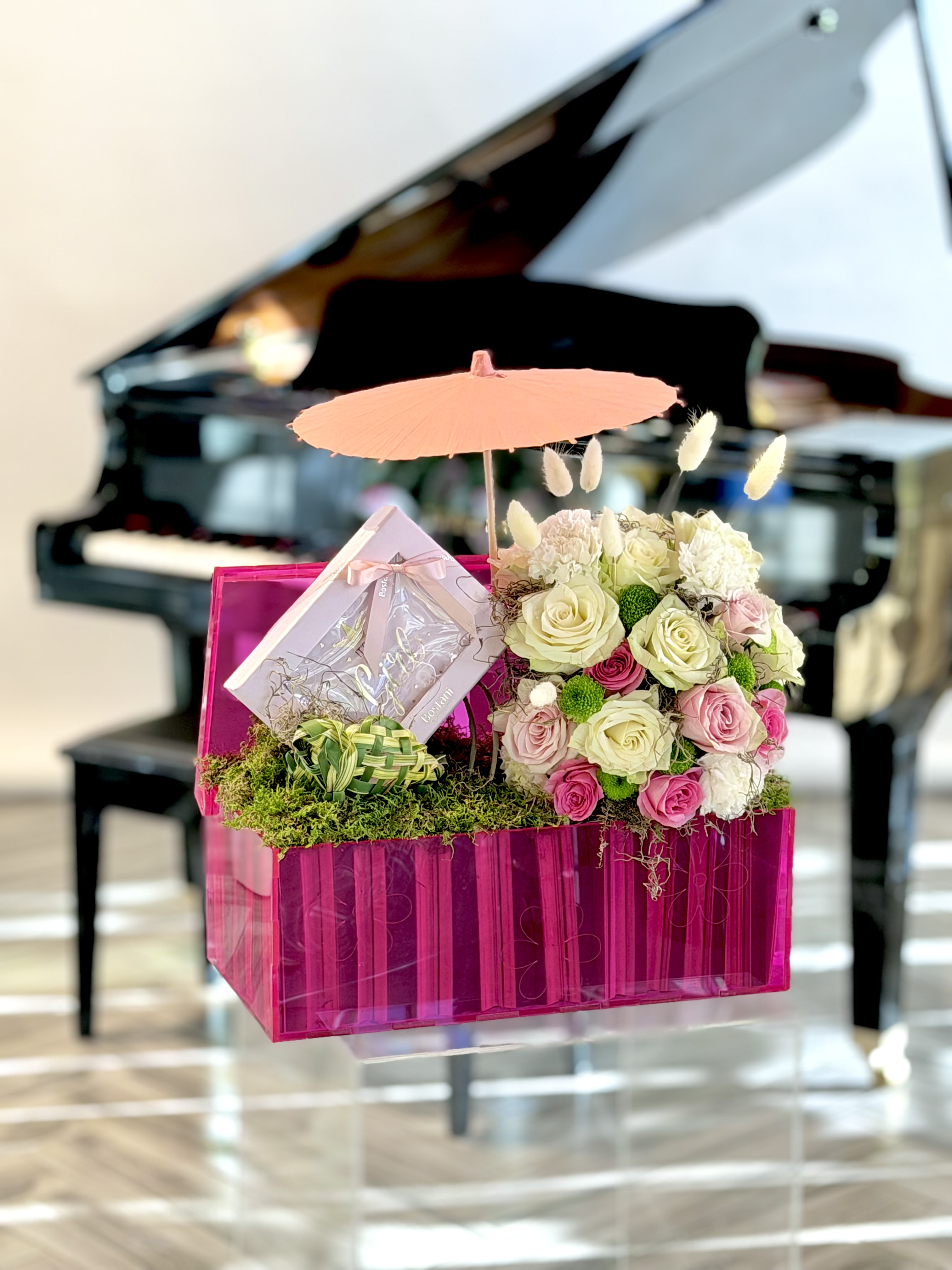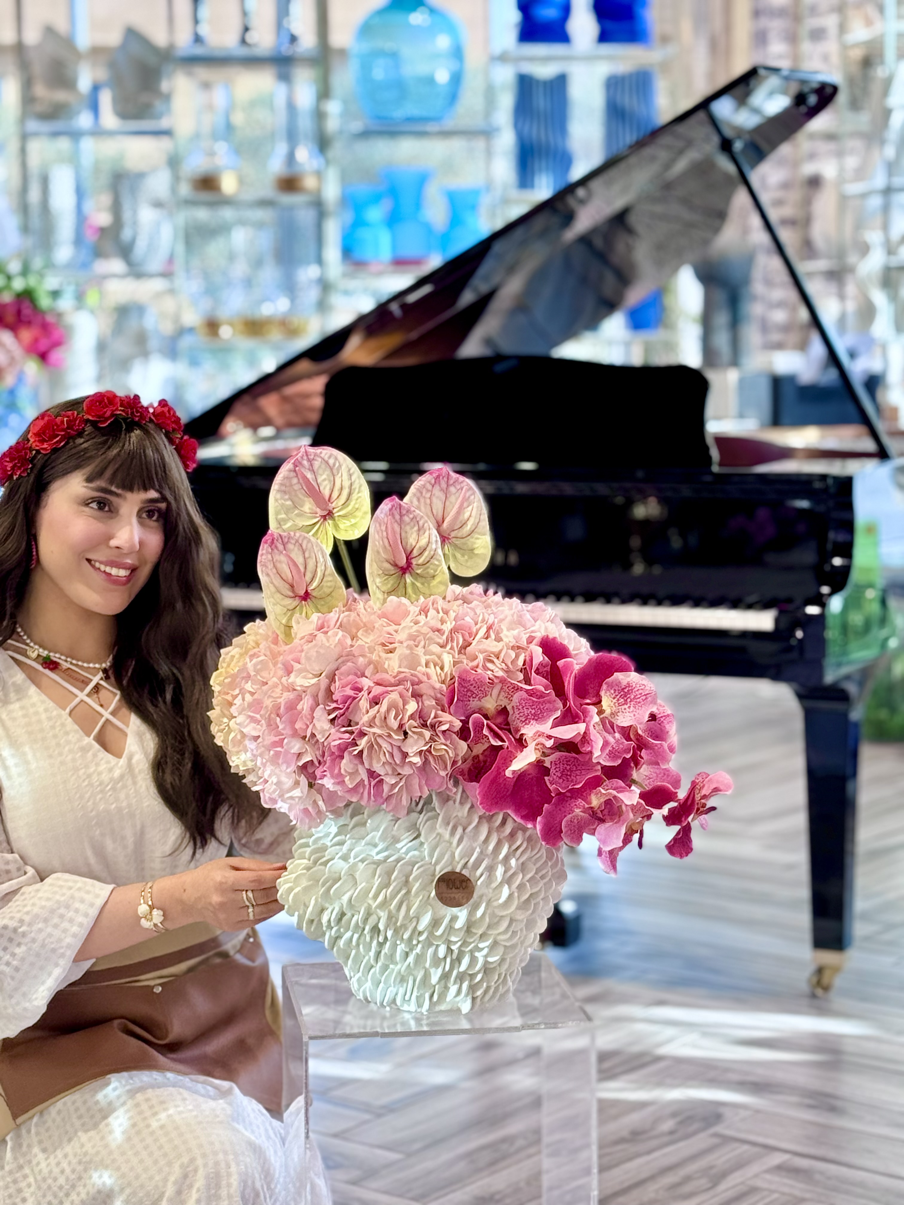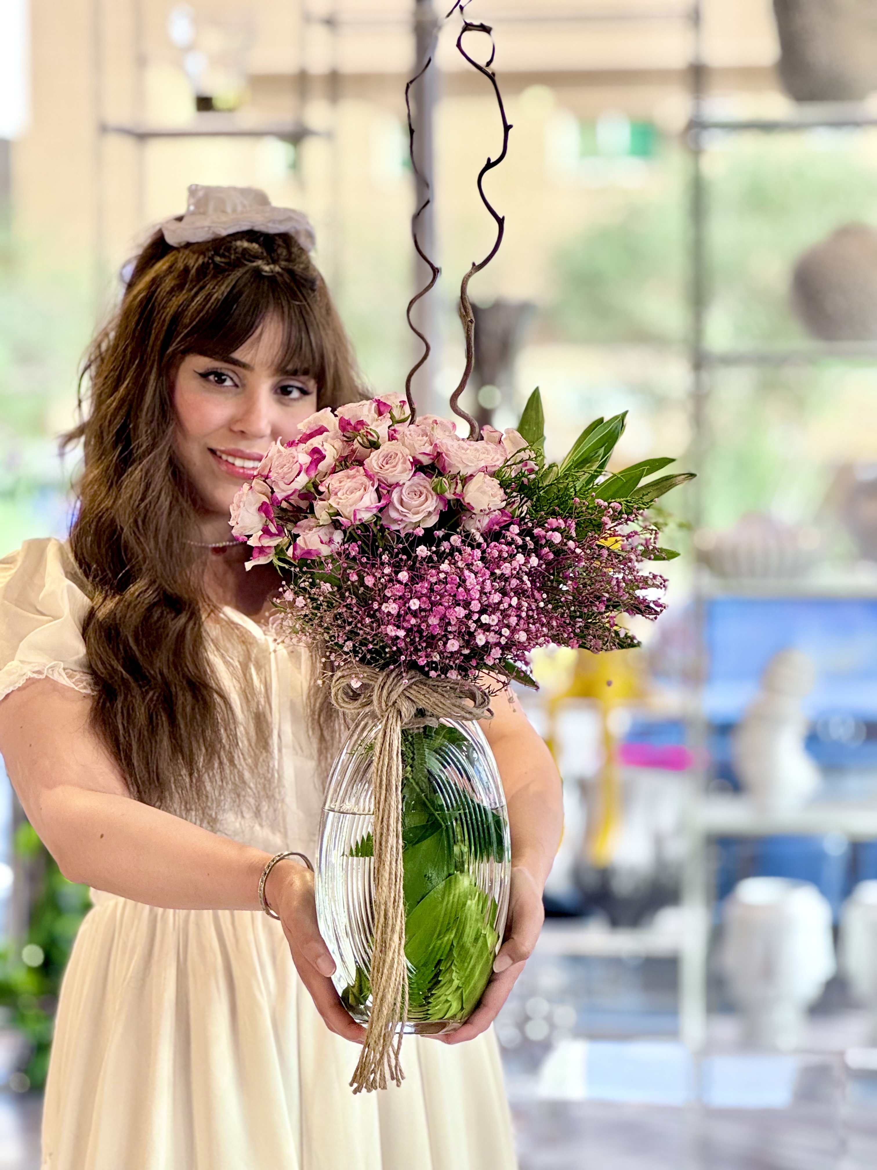 فازة السيراميك مع الفراشه المتحركة والكيك