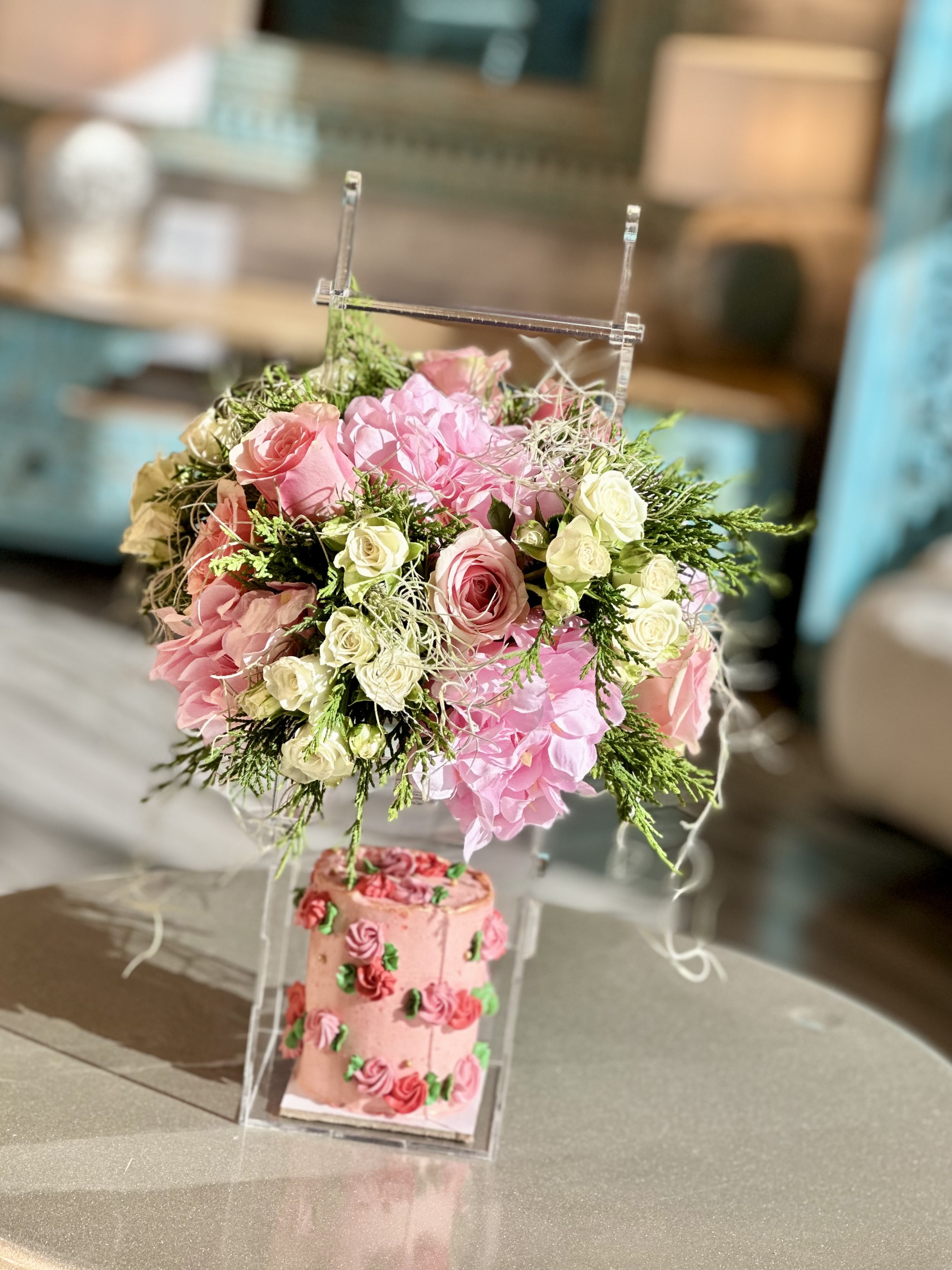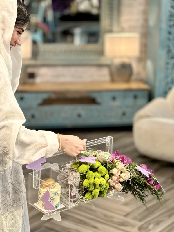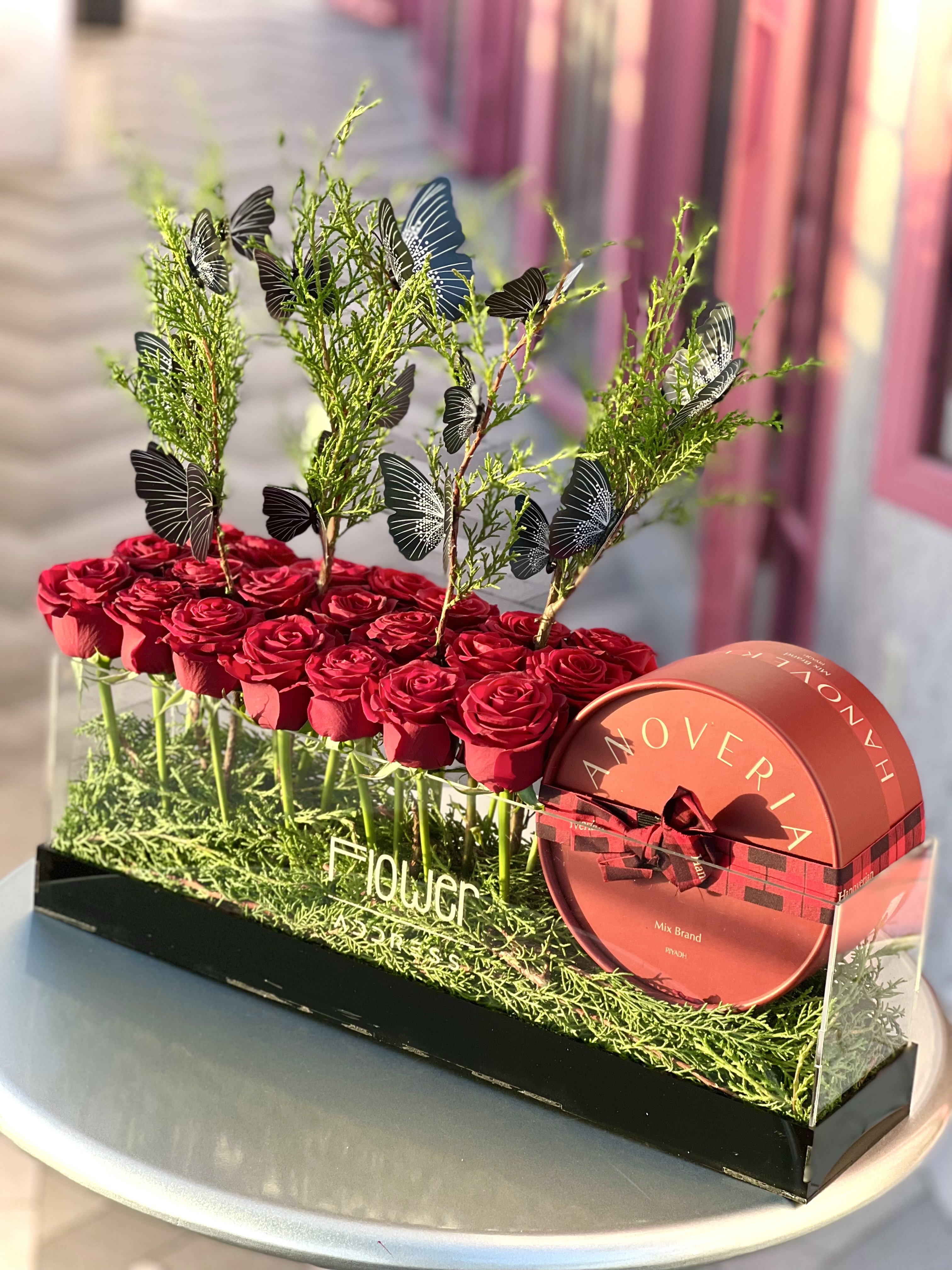 فازة السيراميك مع الفراشه المتحركة والكيك