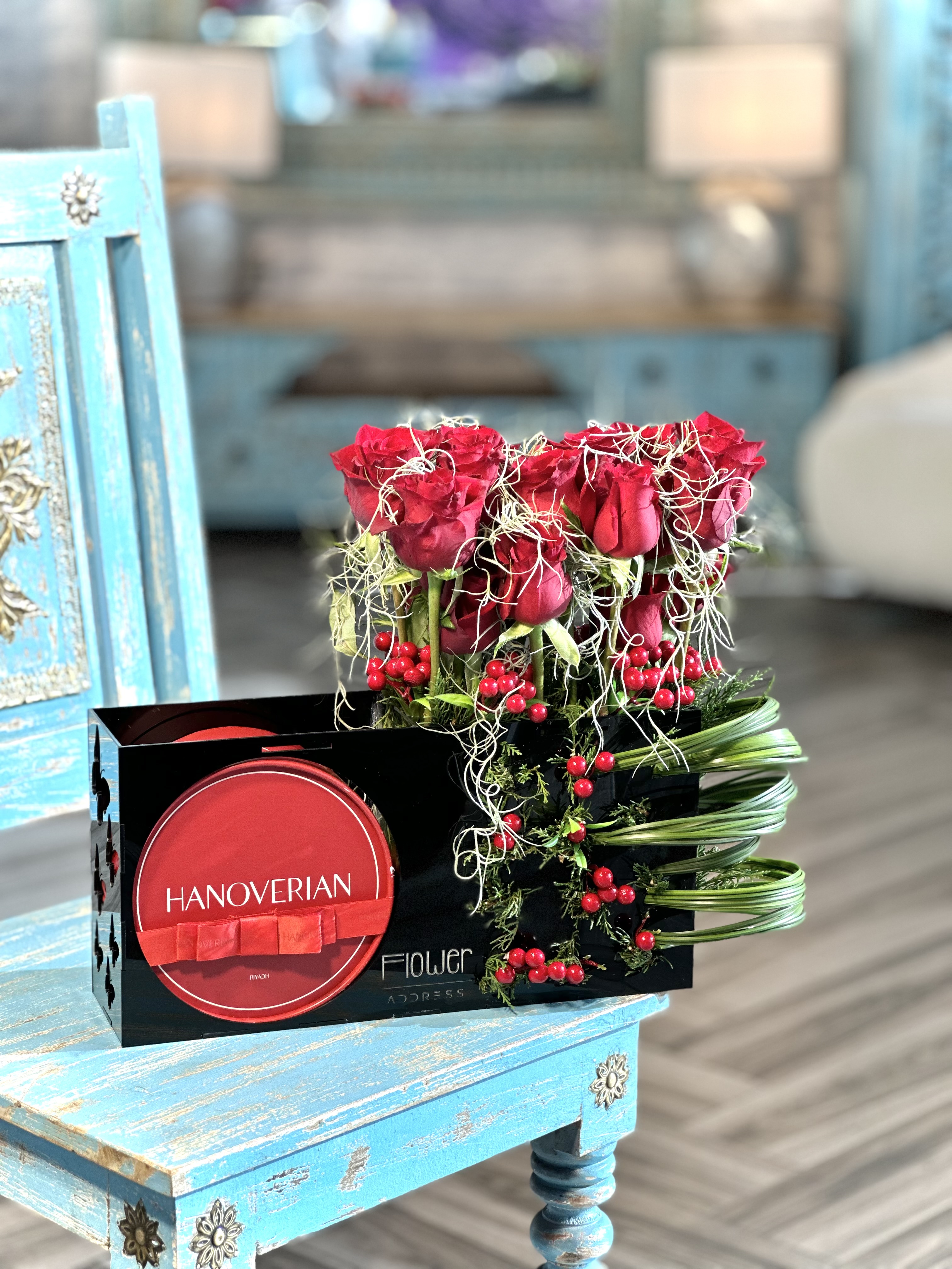 زهرة الكارنيشن الاكوادوري مع كيكة الريد فلفيت