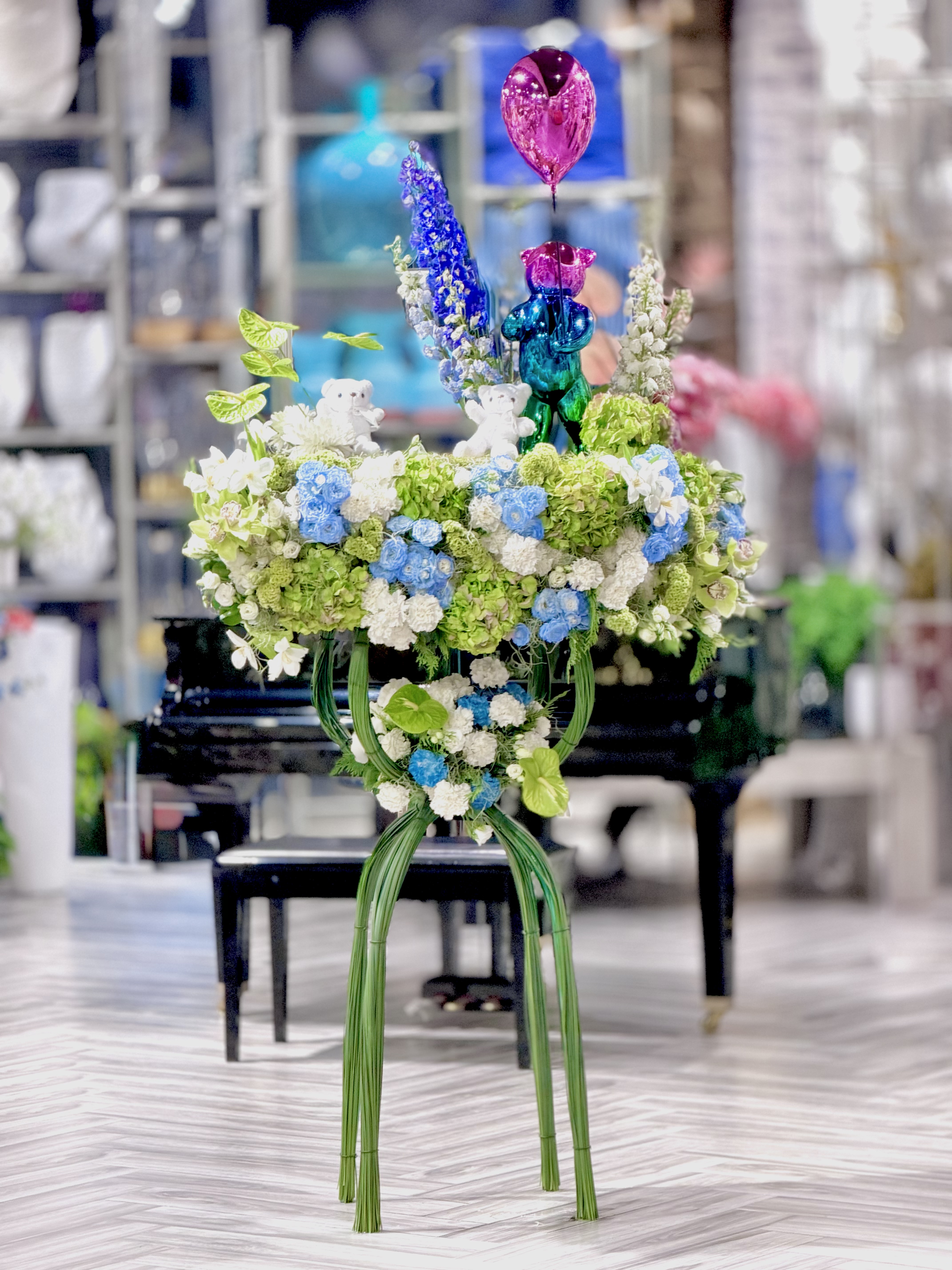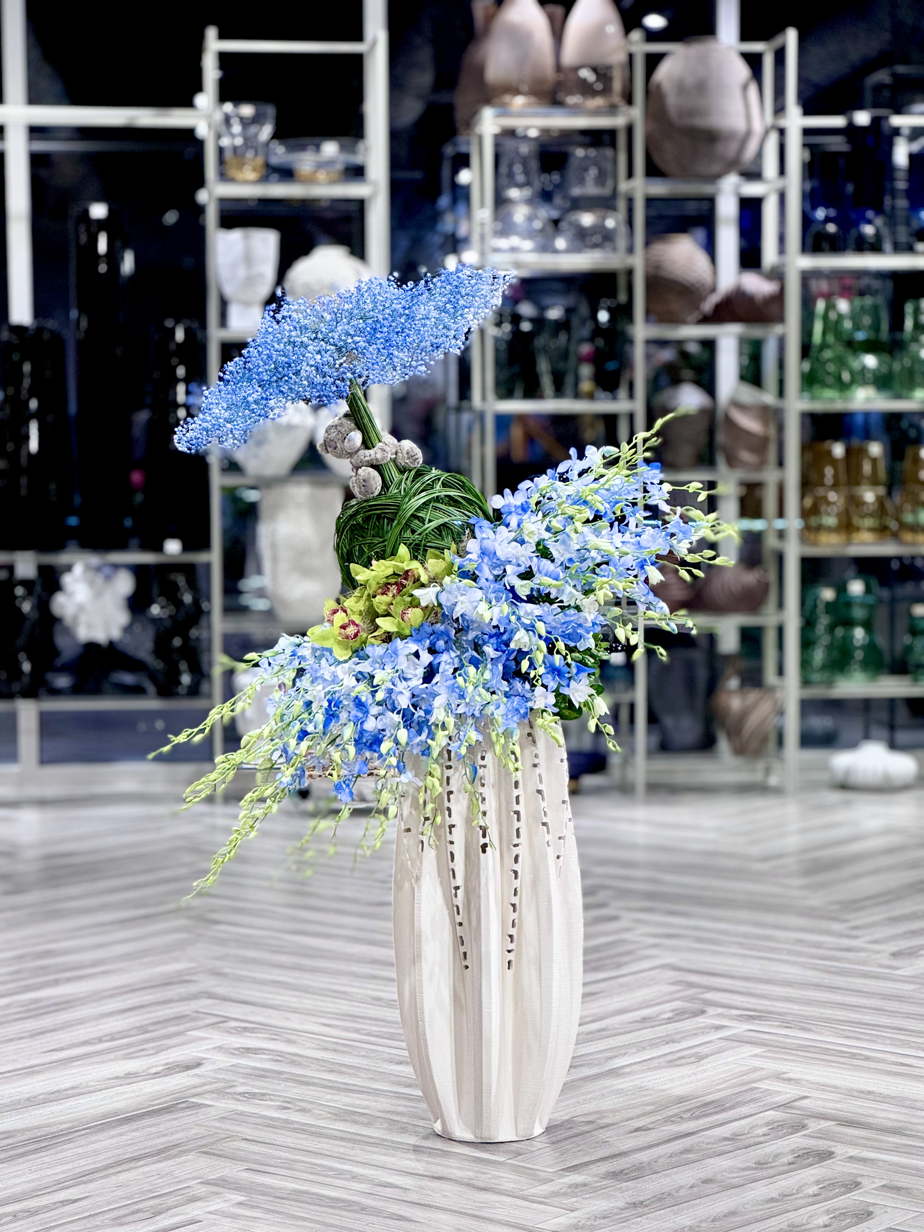 تنسيق الكريز الأزرق مع زهرة الديكو الهولندي